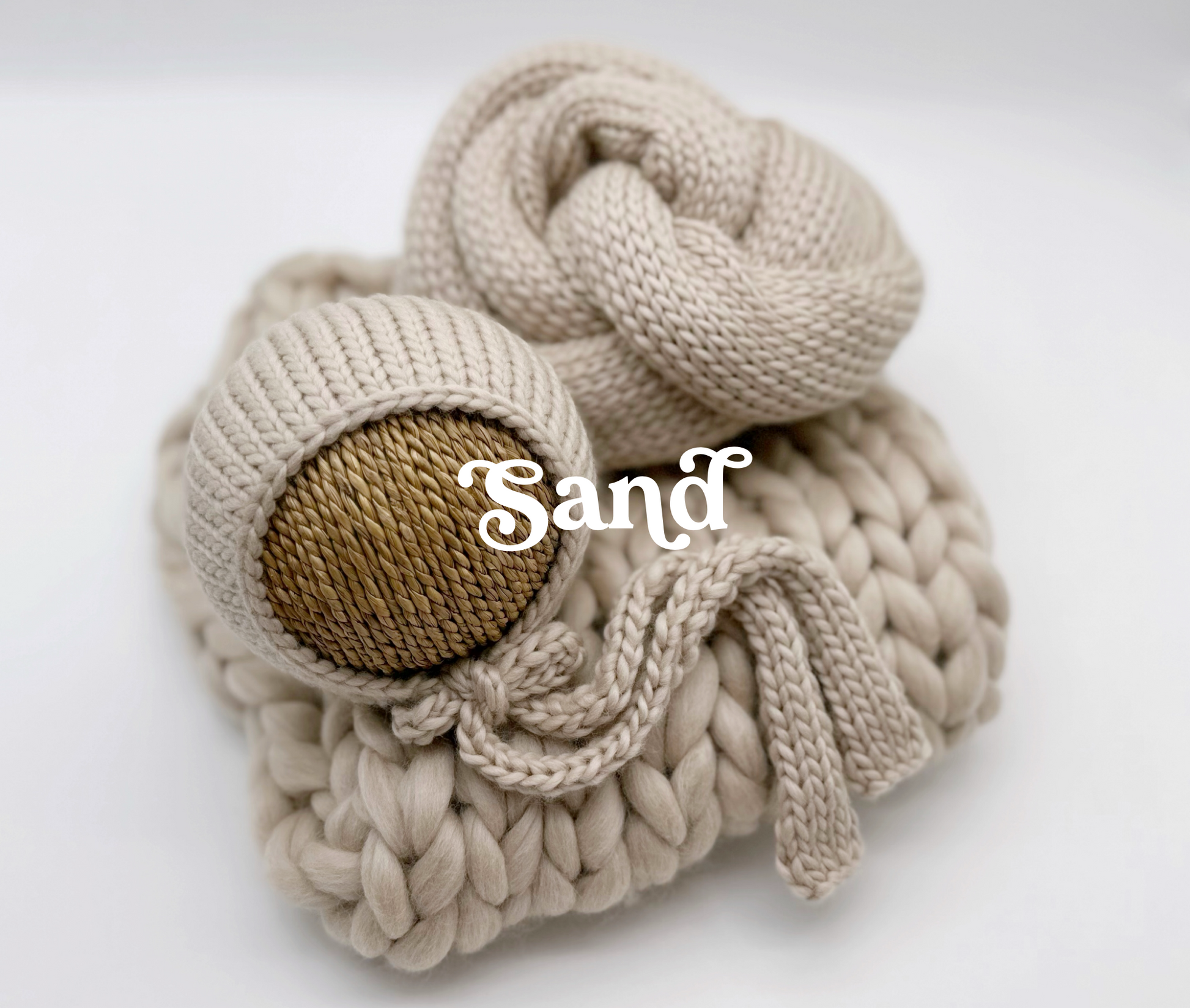 Hand-knit from premium superfine merino wool, this set features a bonnet, wrap, and coordinating layer — each piece crafted to provide both comfort and classic style. The slightly thicker knit of our Luxe Merino line creates beautiful texture on camera while remaining soft and gentle against delicate newborn skin.
